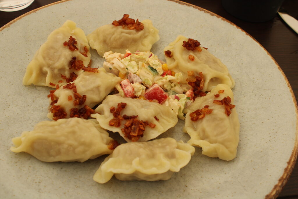 De retour dans la perle du sud de la Pologne ,en fin de journée,il est possible de retourner dans l’ancien quartier juif (KAZIMIERZ) ,afin de de consommer soit un café ou une bière dans les differents établissements de la rue GRODZKA. Au 6 de cette rue,se trouve Cupcake corner, endroit charmant qui propose de délicieux cupcakes , moelleux à souhait. Si vous souhaitez prolonger la soirée dans le quartier de Kazimierz, vous aurez de nombreux endroits pour vous restaurer. On peut citer, entre autres, le restaurant Ariel,ou le bar Grodzki. Ce bar restaurant propose une cuisine polonaise authentique et à des tarifs très raisonnables.Mais vous en découvrirez beaucoup d’autres au gré de votre déambulation dans le quartier. N’hésitez-pas à déguster des Pyrogis, sorte de ravioles fourrés à la viande, à la crème avec des épinards,etc… Cela vaut le coup! (cf.photo ci-dessous)