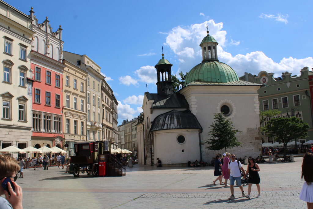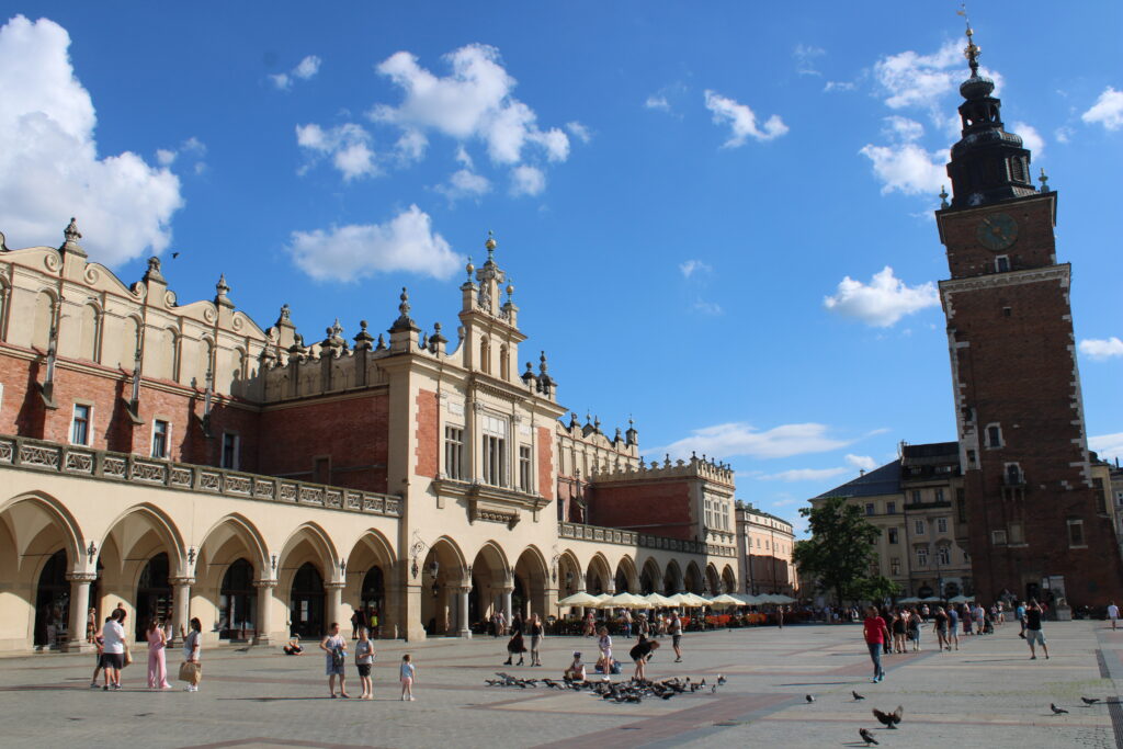 Ancienne capitale de la Pologne, Cracovie,ville de plus de 800 000 habitants,est une ville vivante et captivante. Cette première journée peut être consacrée le matin à la visite de la gande place. Cette dernière appelée Rynek Glowny , en polonais ,affiche avec fierté la halle aux draps en son centre,la basilique Sainte Marie du XIV ème siècle ainsi que la chapelle Saint Adalbert du XII ème. Egalement présent sur la place , Adam MICKIEWICZ arbore sa belle statue. Célèbre poète polonais ,il fut le chantre du romantisme polonais, au XIX ème siècle.